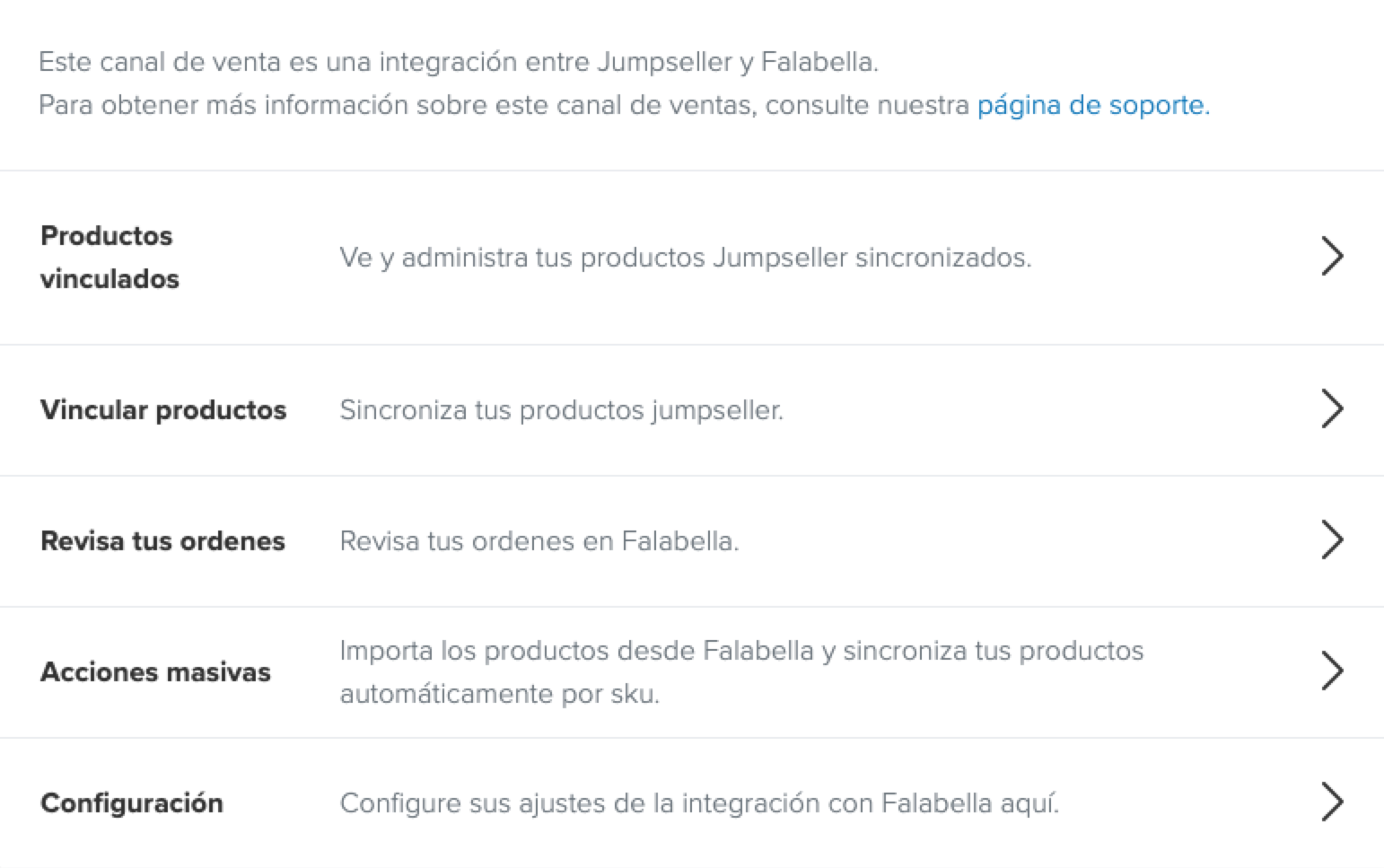 | Gestión de pedidos separada | Los pedidos de Falabella se crean en Jumpseller |